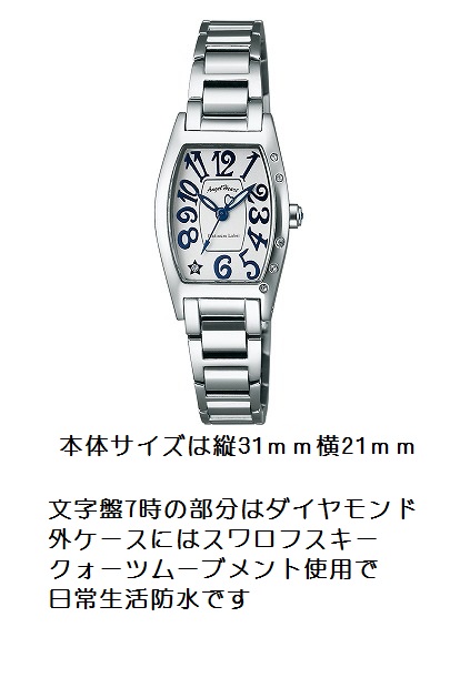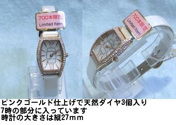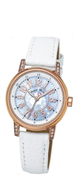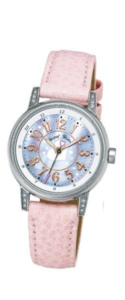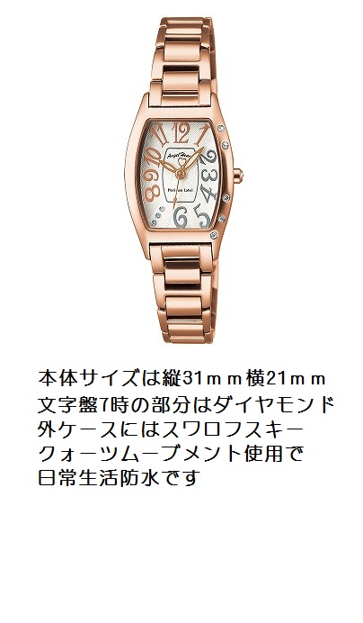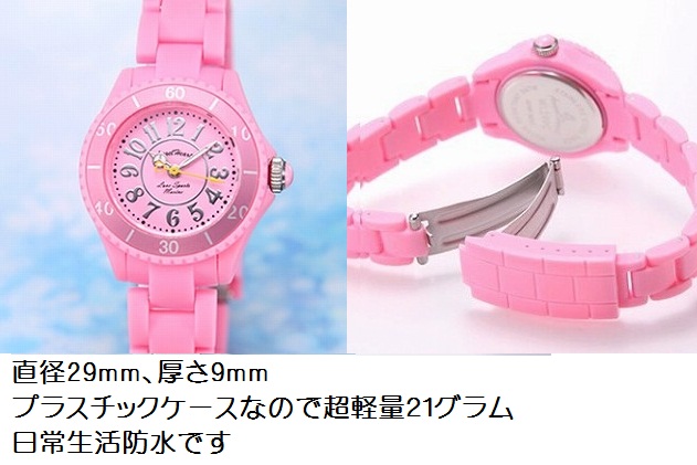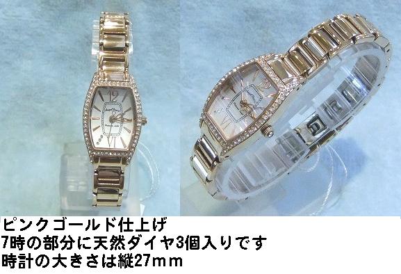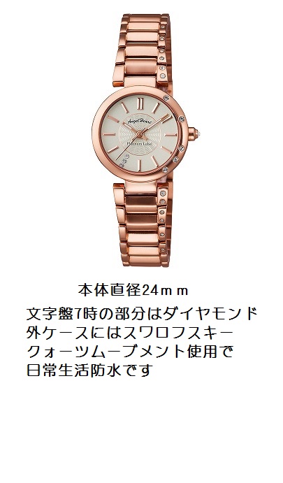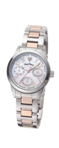 ステンレス素材 一部ピンクゴールド仕上 シェルカード文字盤 サイズ31mm ¥11,550 商品番号WEH036 |