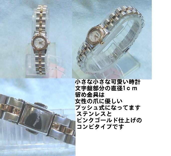 ステンレス素材 数字部分にラインストーン ブレスレット文字盤の一部 リュウズ部分は ピンクゴールド調 サイズ31mm ¥13,650 商品番号WEH016 |