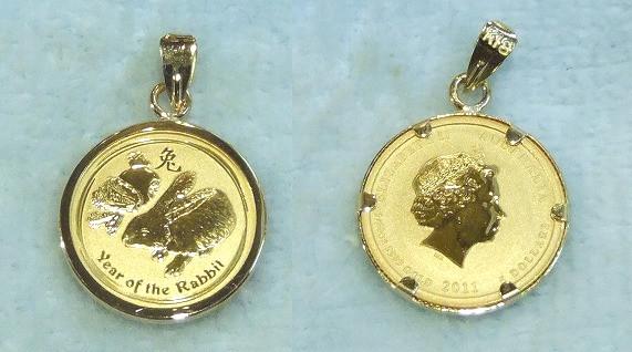 兎年限定コインの10分の1オンスのペンダントが