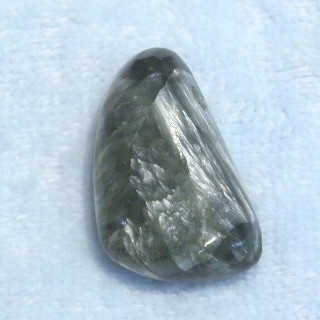 セラフィナイト 皮ひもの通る大きな穴開きです 縦3.5cmほど
